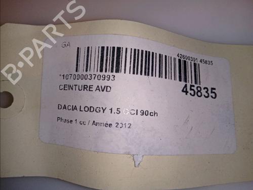 Front right belt tensioner DACIA LODGY (JS_) 1.5 dCi (JSMC, JSAF) is a unique original used part with the reference 868852918R and with the article's id BP11101648C88