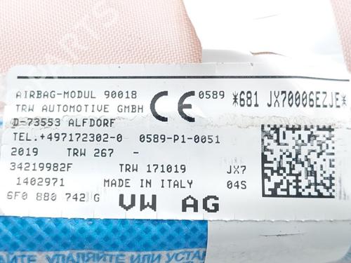 Right curtain airbag SEAT IBIZA V (KJ1, KJG) 1.0 TSI is a unique original used part with the reference 6F0880742G and with the article's id BP30812037C12