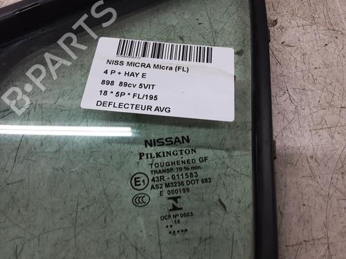 Front left door window NISSAN MICRA V (K14) 0.9 IG-T is a unique original used part with the reference and with the article's id BP32247777C18