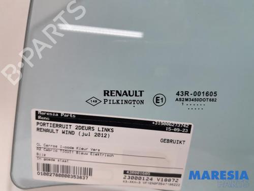 Front left door window RENAULT WIND (E4M_) 1.2 TCe 100 (E4MF) is a unique original used part with the reference 43R001605 | DOT682 | 803010011R and with the article's id BP31500310C18