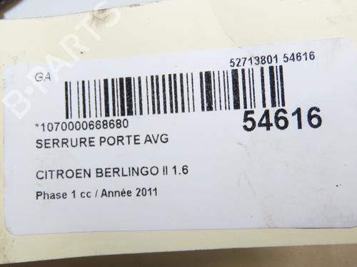 Front left lock CITROËN BERLINGO Box Body/MPV (B9) 1.6 HDi 75 is a unique original used part with the reference 9135EG and with the article's id BP30691887C98