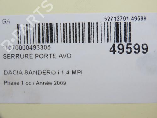 Front right lock DACIA SANDERO 1.4 (BS0C, BS0A, BS0G, BS1F, BS0E) is a unique original used part with the reference 8200735224 and with the article's id BP30867385C97