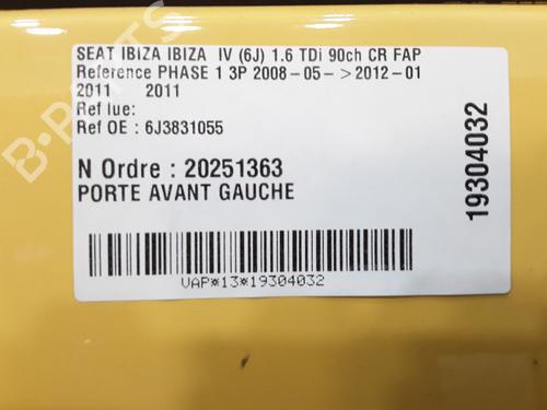 Left front door SEAT IBIZA IV (6J5, 6P1) 1.6 TDI 6J3831055 6J3831055#6J3831055
