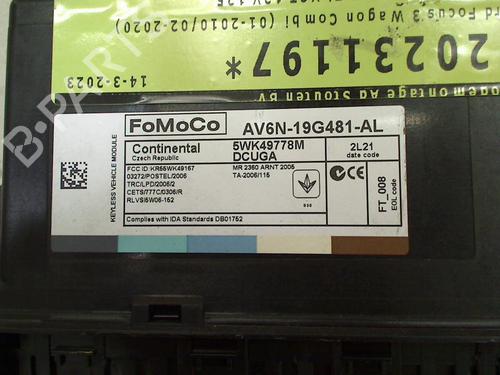 Comfort control module FORD FOCUS III Turnier 1.0 EcoBoost AV6N-19G481-AL av6n-19g481-al