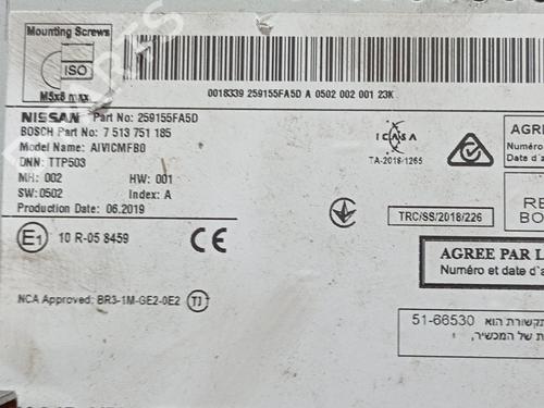 Display monitor NISSAN MICRA V (K14) is a unique original used part with the reference 259155FA5D and with the article's id BP28424037C48