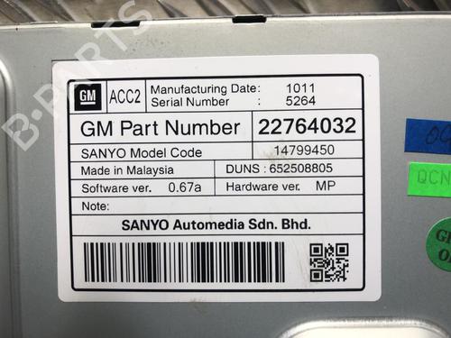 Display monitor OPEL INSIGNIA A (G09) 2.0 CDTI (68) is a unique original used part with the reference 22764032 and with the article's id BP31198329C48