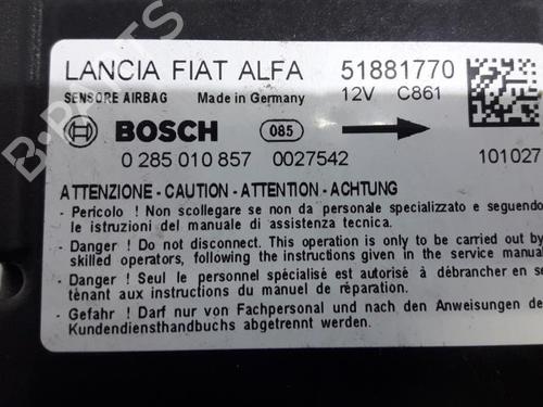 ECU airbags FIAT DOBLO Cargo (263_) 1.6 D Multijet (263WXD1B, 263WXR1B, 263WXX1B, 263ZXD1B,... is a unique original used part with the reference 0285010857 | 51881770 | 0051810463 | 0051881770 | 518817700 and with the article's id BP31413376M53