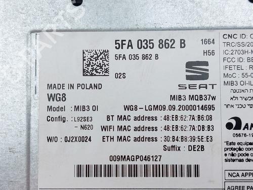 Electronic module CUPRA FORMENTOR (KM7, KMP) 2.0 TSI 4Drive is a unique original used part with the reference 5FA035862B and with the article's id BP32350444M83
