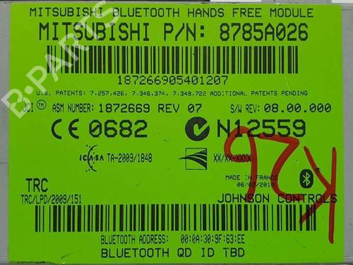 Electronic module MITSUBISHI ASX (GA_W_) 1.8 DI-D (GA6W) is a unique original used part with the reference 8785A026 | 1872669 and with the article's id BP25295183M83