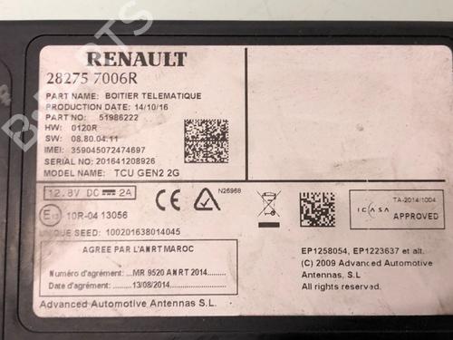 Electronic module RENAULT MEGANE IV Grandtour (K9A/M/N_) 1.2 TCe 100 is a unique original used part with the reference 282757006R | 51986222 and with the article's id BP23202032M83