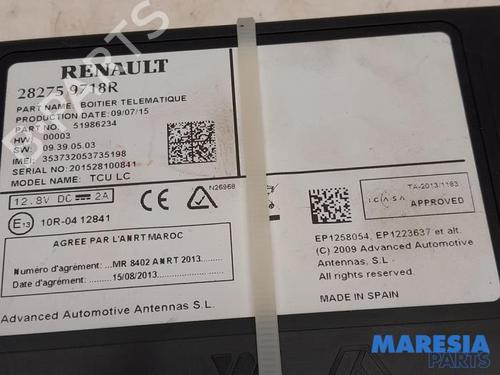 Electronic module RENAULT ZOE Hatchback Van (BFM_) Electric (BFME) is a unique original used part with the reference 282759718R | 51986234 | 10R0412841 and with the article's id BP31387143M83