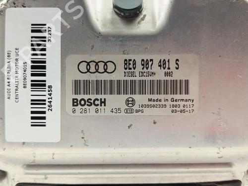 Engine control unit (ECU) AUDI A4 B6 (8E2) 2.5 TDI is a unique original used part with the reference 8E0907401S | 0281011435 and with the article's id BP32230228M57