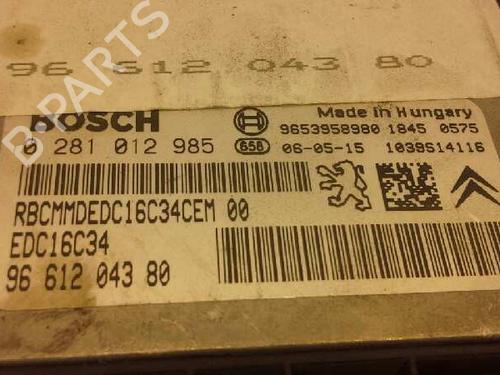 The reference 0281012985 is a Bosch EDC16C34 engine control unit used in Citroën and Peugeot vehicles with a 16 HDi diesel engine. Its price varies between and depending on the model, condition and seller?? Technical characteristicsManufacturer: BoschBosch reference: 0281012985Associated PSA reference: 9661204380Management system: EDC16C34Voltage: 12 VCompatible engine: 16 HDi (DV6TED4)Function: Control of injection, turbo, EGR sensors and electronic engine management?? Vehicles that mount this referenceBrandModelApproximate yearEnginePowerFuelCitroënC4 Coupé / Berlina2004–201016 HDi109 CVDieselCitroënC4 Grand Picasso I2006–201316 HDi109 CVDieselPeugeot207 / 307 Berlina (S2)2005–201216 HDi109 CVDiesel