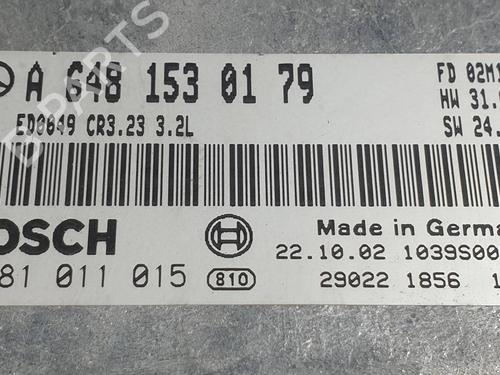 Engine control unit (ECU) MERCEDES-BENZ E-CLASS (W211) E 320 CDI (211.026) is a unique original used part with the reference 0281011015 and with the article's id BP29128285M57
