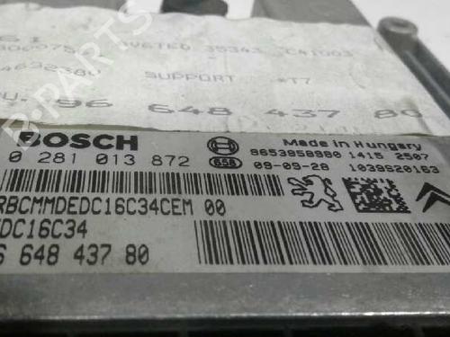 The ECU with Bosch reference 0281013872 corresponds to the EDC16C34 family used in 16 HDi diesel engines of the PSA group (Peugeot and Citroën). Its approximate price ranges between and depending on whether it is used, repaired or new?? Main featuresManufacturer: BoschBosch reference: 0281013872 (0 281 013 872)Family: EDC16C34-411Associated PSA reference: 9664843780 9653958980 9666752880Function: Engine control unit (ECU/UCE) for common rail diesel injection managementCompatibility: 16 HDi DV6 engines (9HX 9HZ DV6ATED4)Management: Control of turbo injection EGR emissions and communication with other modules