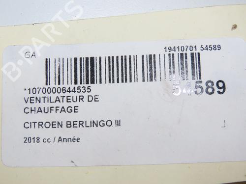 Heater blower motor CITROËN BERLINGO Box Body/MPV (K9) 1.6 BlueHDi 100 is a unique original used part with the reference 9849717080 and with the article's id BP31120151M62