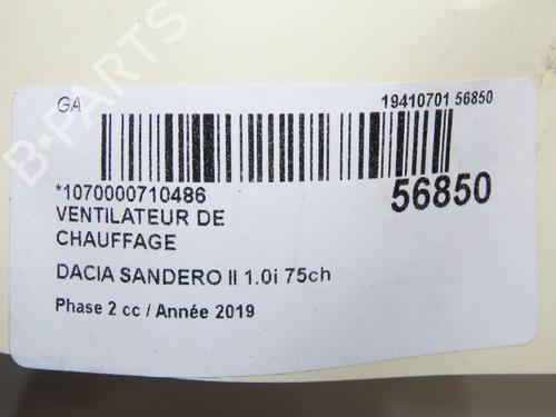 Heater blower motor DACIA SANDERO II 1.0 SCe 75 (B8JC, B8JD, B8NC) is a unique original used part with the reference 272107379R and with the article's id BP32377308M62