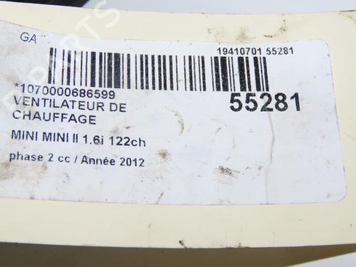 Heater blower motor MINI MINI (R56) Cooper is a unique original used part with the reference 64119266899 and with the article's id BP31865232M62