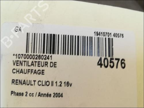 Heater blower motor RENAULT CLIO II (BB_, CB_) 1.2 16V (BB05, BB0W, BB11, BB27, BB2T, BB2U, BB2V, CB05,... is a unique original used part with the reference 7701050899 and with the article's id BP9611014M62