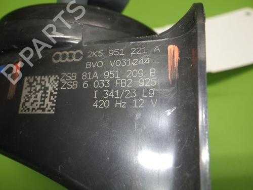 Signal horn, AUDI (NSU) Q2 Typ GAB/GAG from 06.2016. Engine size: 1968. KW: 110. PS: 150. Fuel: DIESEL. Mileage: 16945. First registration: 09.01.2024. Engine code: DTTC. Transmission code: VDV. Reference number: 2K5951221A. Note: AUDI (NSU) 2K5951221A. Color code: LY9T. Color: BLACK. 2K5951221A