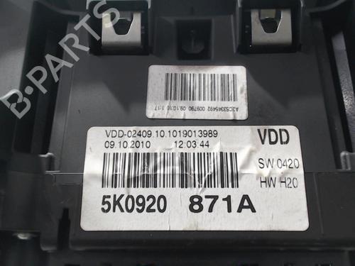 Instrument cluster VW GOLF VI (5K1) 1.6 TDI is a unique original used part with the reference 5K0920871A and with the article's id BP32214432C47