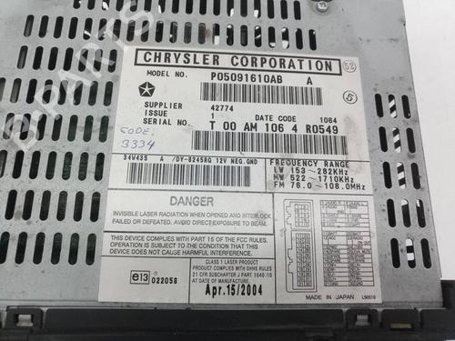 Radio CHRYSLER VOYAGER IV (RG, RS) is a unique original used part with the reference P05091610AB | and with the article's id BP29174465E6