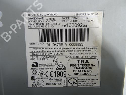 Radio CITROËN C3 III (SX) 1.6 BlueHDi 100 is a unique original used part with the reference 1629085680 and with the article's id BP24861027E6