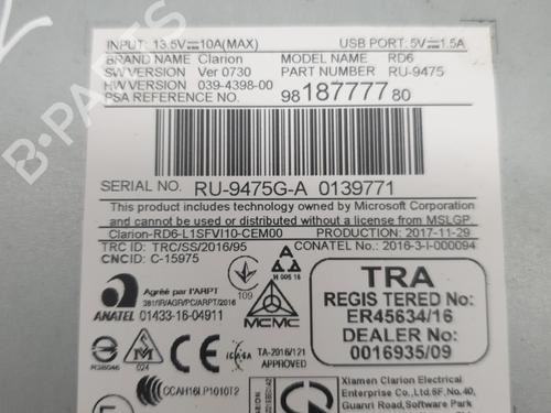 Radio CITROËN JUMPY III Van (V_) 1.6 BlueHDi 95 is a unique original used part with the reference 9818777780 and with the article's id BP25375417E6