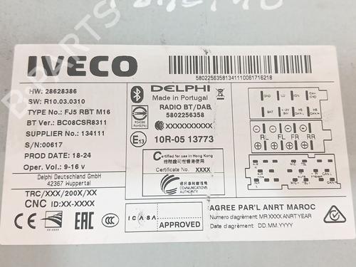Radio IVECO DAILY VI Platform/Chassis is a unique original used part with the reference 5802256358 | 10R0513773 and with the article's id BP33831762E6
