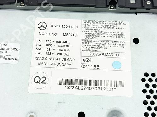 Radio MERCEDES-BENZ CLK (C209) is a unique original used part with the reference A2098206589 | and with the article's id BP31700615E6