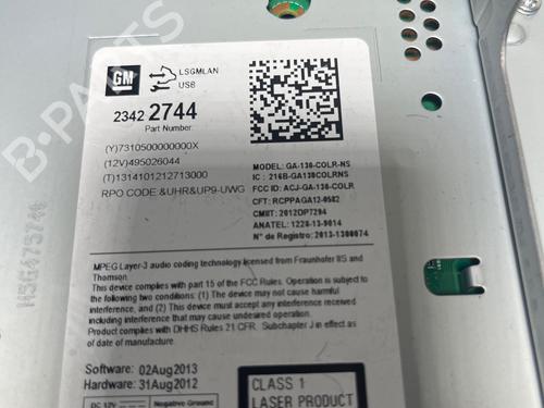 Car radios are sold without a code. Reprogramming may be necessary on some models. Please contact your GM dealer or repairer: 23422744 MODEL: GA-130-COLR-NS IC: 216B-GA130COLRNS FCC ID: ACJ-GA-130-COLR CFT: RCPPAGA12-0582 CMIIT: 2012DP7294 ANATEL: 1228-13-9014 ORIGINAL