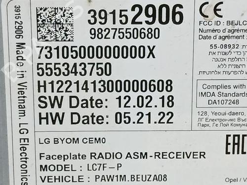 Electronic module OPEL CROSSLAND X / CROSSLAND (P17, P2QO) is a unique original used part with the reference 9827550680 | LG | 39152906 | 555343750 and with the article's id BP22179045M83