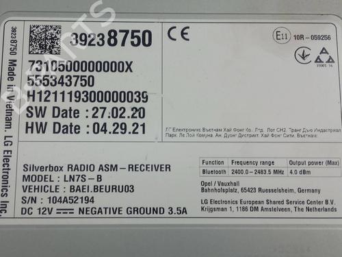 At B-Parts, we understand how important reliability is when it comes to used car parts. That’s why every Radio for OPEL INSIGNIA B Grand Sport (Z18) , compatible with models from 2017 to 2026, goes through a strict quality control process to ensure it meets the highest standards before being shipped to the customer.