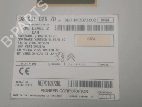 WITHOUT CODE BRAND PIONEER REF 98051026ZD CD PLAYER BLUETOOTH VIN : VF3CCZMZ0EW035758