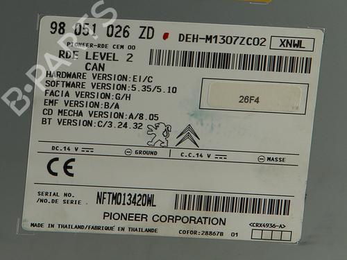 WITHOUT CODE BRAND : PIONEER REF : 9851026ZD VIN: VF3CCZMZ0ET141746 CD PLAYER : YES | |