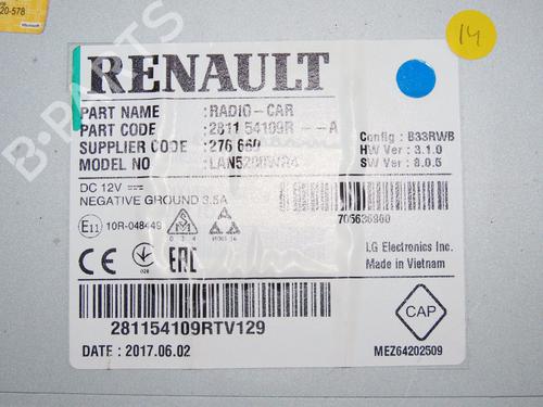 Radio RENAULT CAPTUR I (J5_, H5_) 1.5 dCi 90 (J5N4, J5M5, J5MW, J5M6, J5AL, J5AJ) 281156367R