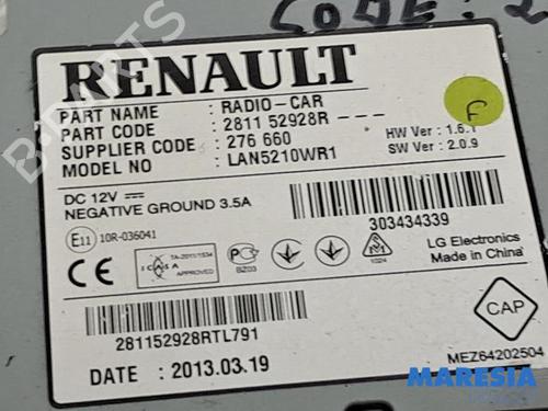Radio RENAULT CLIO IV Grandtour (KH_) 1.5 dCi 90 (KHN3, KHN4) is a unique original used part with the reference 281152928R | 276660 and with the article's id BP31537191E6