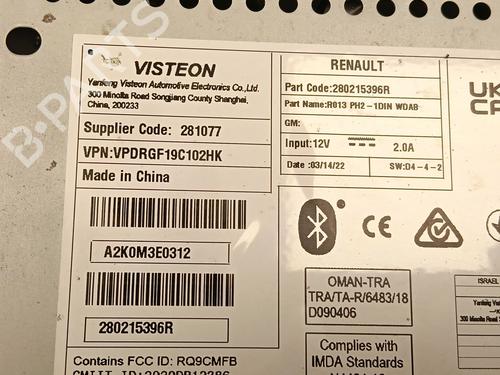 Radio RENAULT EXPRESS Box Body/MPV is a unique original used part with the reference 280215396R and with the article's id BP31955923E6