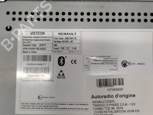 Radio RENAULT TWINGO III (BCM_, BCA_) 0.9 TCe 95 is a unique original used part with the reference 280213129R and with the article's id BP27063489E6