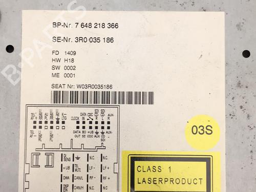 Radio SEAT EXEO (3R2) 2.0 TDI is a unique original used part with the reference 3R0035186B and with the article's id BP25557078E6