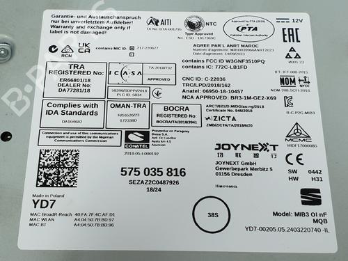 Radio SEAT IBIZA V (KJ1, KJG) 1.0 TSI 575035816 575035816