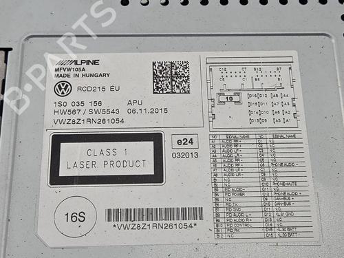 Radio VW UP! (121, 122, BL1, BL2, BL3, 123) 1.0 is a unique original used part with the reference 1S0035156 and with the article's id BP31657378E6