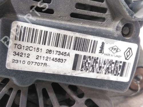 Alternator DACIA DUSTER (HS_) 1.5 dCi (HSAJ) is a unique original used part with the reference 231007707R 231007707R and with the article's id BP32353516M7