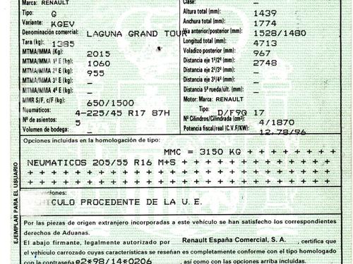 RENAULT LAGUNA II Grandtour (KG0/1_) 1.9 dCi (KG1V) (130 hp)