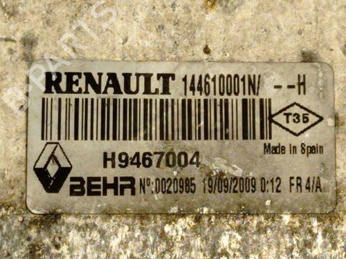 Intercooler RENAULT LAGUNA III (BT0/1) 1.5 dCi (BT00, BT0A, BT0T, BT1J) is a unique original used part with the reference 144610001NH | 144610001N | H9467004 and with the article's id BP29190028M30