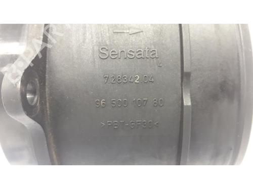 Mass air flow sensor PEUGEOT PARTNER Tepee 1.6 HDi 16V is a unique original used part with the reference 9650010780 | 1610874680 | 72834204 and with the article's id BP31448989M95