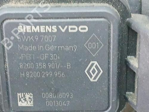 Mass air flow sensor RENAULT CLIO III (BR0/1, CR0/1) is a unique original used part with the reference 8200358901B | SIEMENS | VDO | 8200299956 | 5WK97007 and with the article's id BP22733743M95