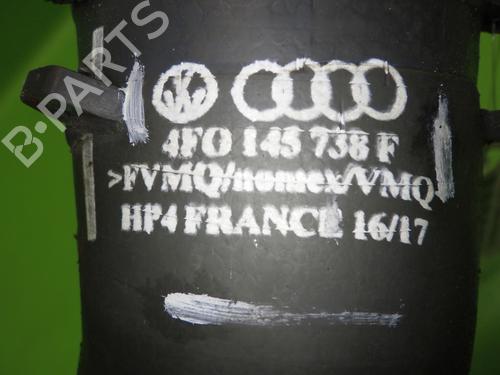 Intercooler hose, AUDI (NSU) A6 Avant Typ 4F5 from 10.2008. Displacement: 2698. KW: 140. HP: 190. Fuel: DIESEL. Mileage: 315914. First registration: 01.04.2009. Engine code: CANA. Transmission code: JME. Reference number: 4F0145738F. Note: AUDI (NSU) 4F0145738F. Color code: LZ9Y. Color: BLACK. 4F0145738F