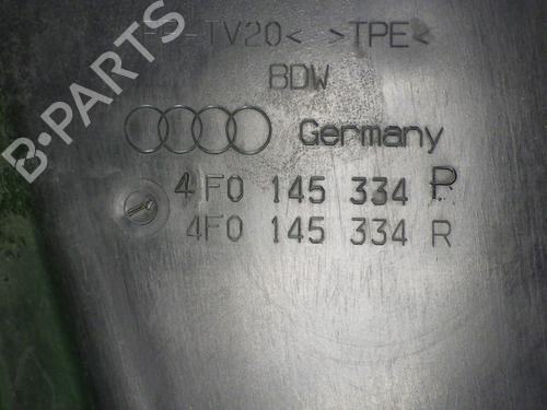 Air duct right, AUDI (NSU) A6 Avant Typ 4F5 from 10.2008. Displacement: 2698. KW: 140. PS: 190. Fuel: DIESEL. Mileage: 315914. First registration: 01.04.2009. Engine code: CANA. Transmission code: JME. Reference no: 4F0145334P. Note: AUDI (NSU) 4F0145334P. Color code: LZ9Y. Color: BLACK. 4F0145334P