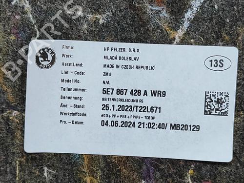 Boot lining SKODA OCTAVIA IV Combi (NX5, PV5) 1.5 TSi is a unique original used part with the reference 5E7867428A and with the article's id BP33369987I3